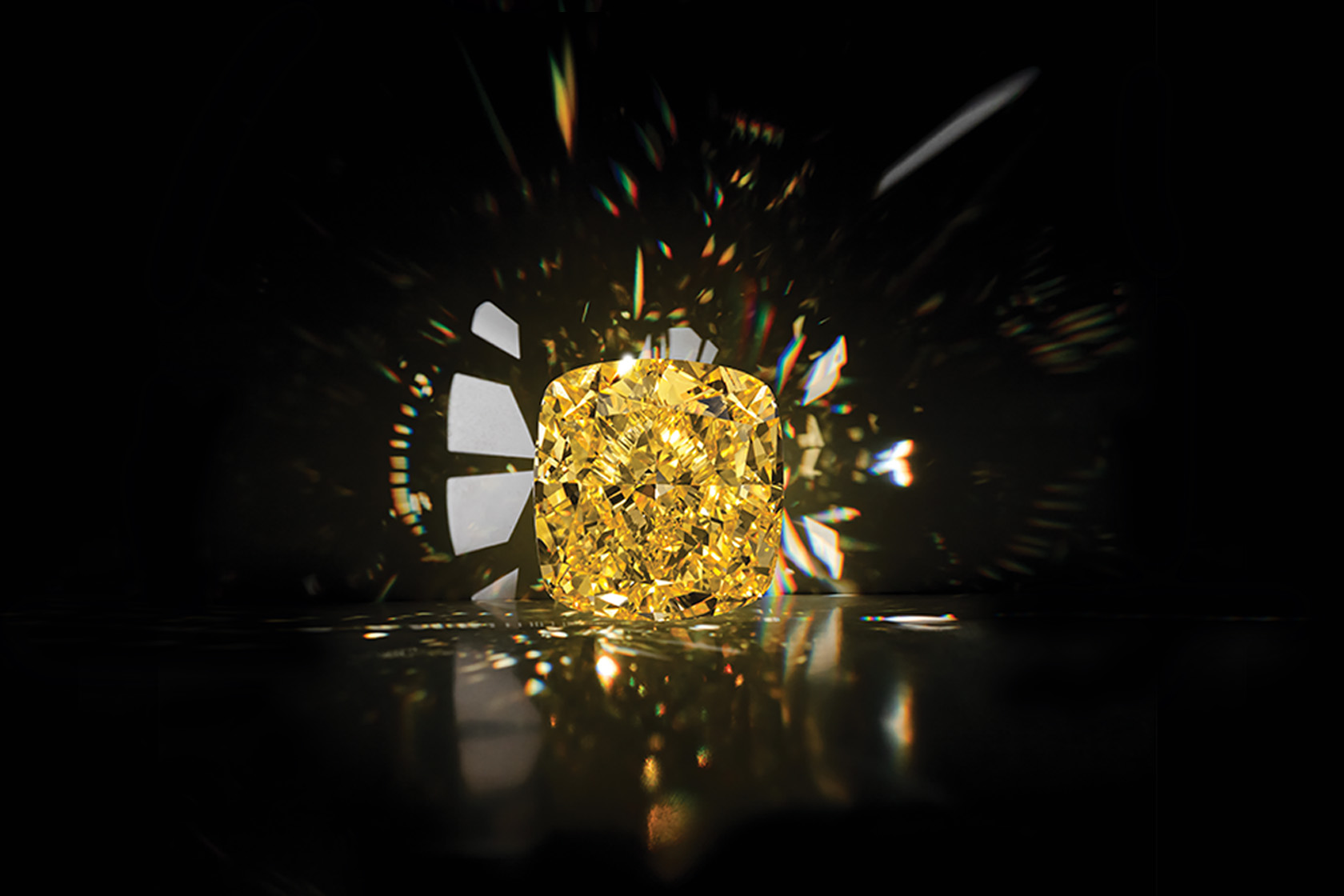 Бриллиантовый шедевр отличается не только рекордными размерами, но и редким фантазийным желтым цветом Vivid Yellow. Работа над его созданием заняла более двух лет и потребовала участия целой команды из 15 лучших в стране мастеров-огранщиков.